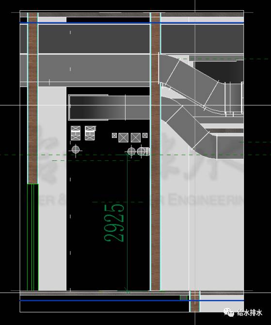 類似的部位還有多處,最終都需要通過更改設(shè)備管線走向來完成業(yè)主要求,此類問題的發(fā)現(xiàn)和解決,就是在Revit軟件直觀可視的基礎(chǔ)下多方協(xié)調(diào)完成的。